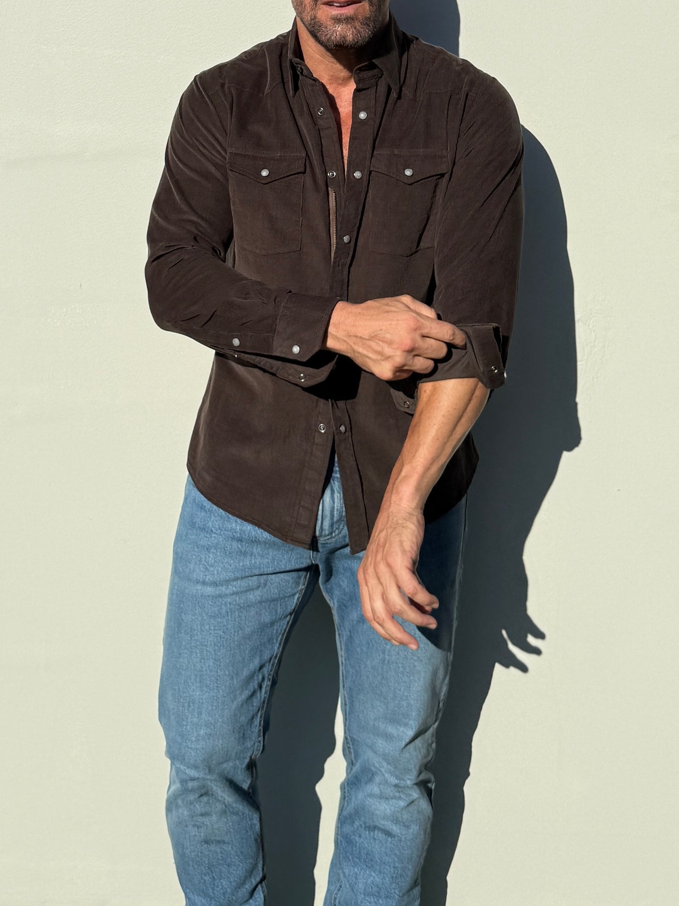 This year, we are expanding our western shirt collection with the addition of corduroy. Made from a 100% long-staple cotton narrow-wale corduroy fabric & sewn together using flat felled seams & single needle stitching, our corduroy western is built to last- but not recommended for the rodeo.