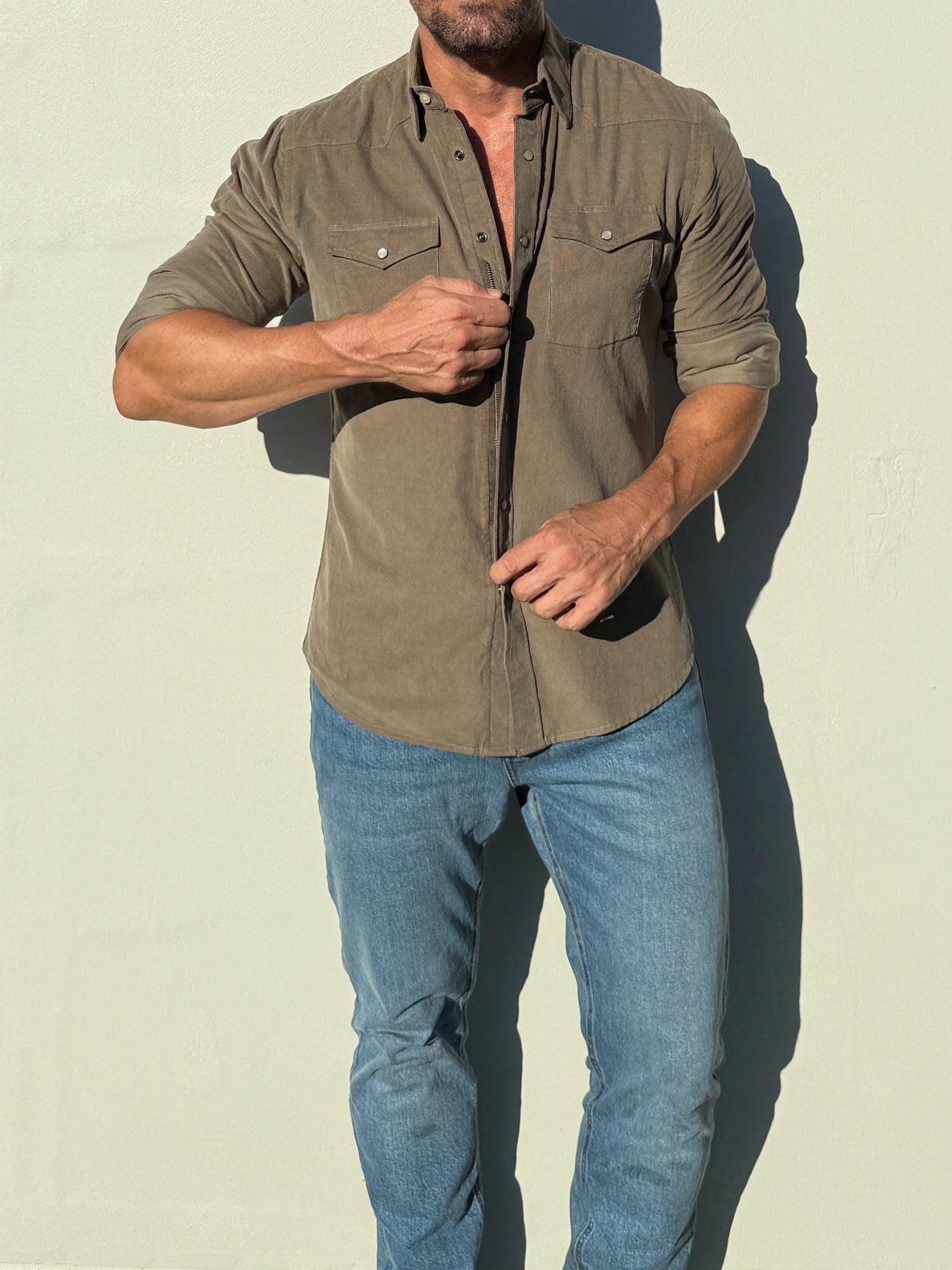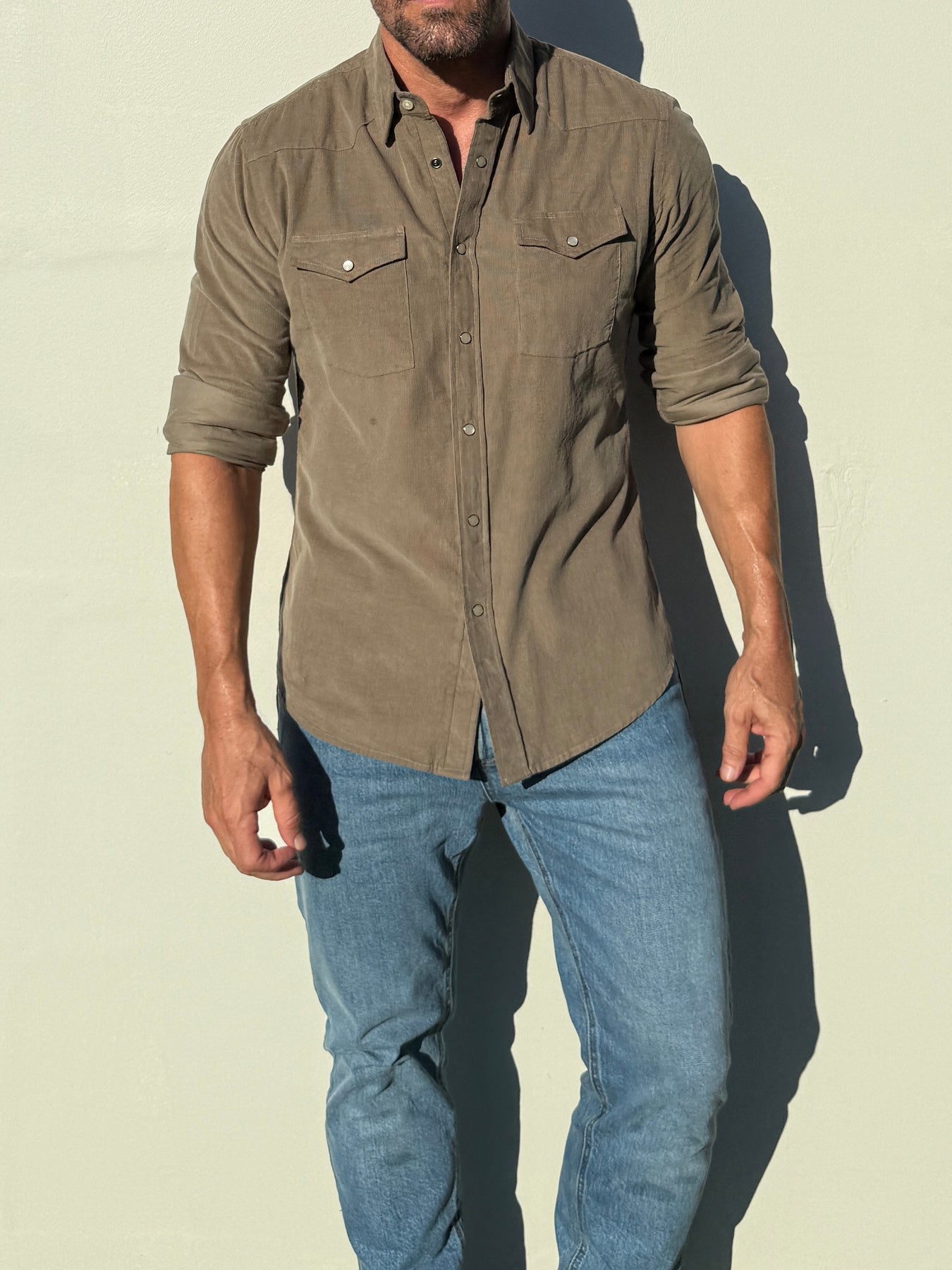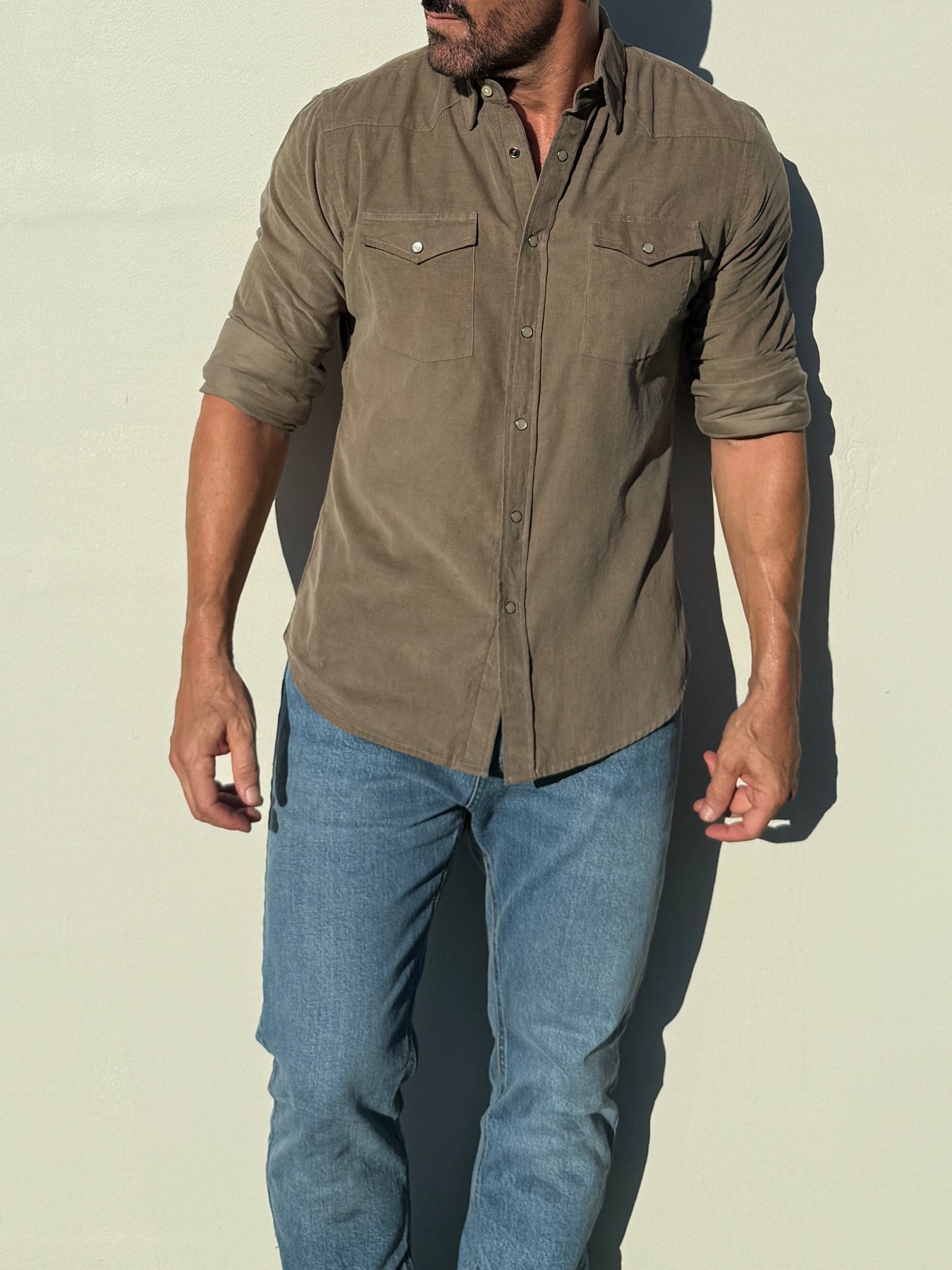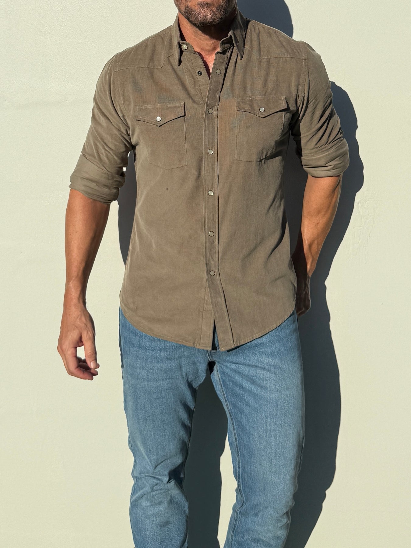 This year, we are expanding our western shirt collection with the addition of corduroy. Made from a 100% long-staple cotton narrow-wale corduroy fabric & sewn together using flat felled seams & single needle stitching, our corduroy western is built to last- but not recommended for the rodeo.