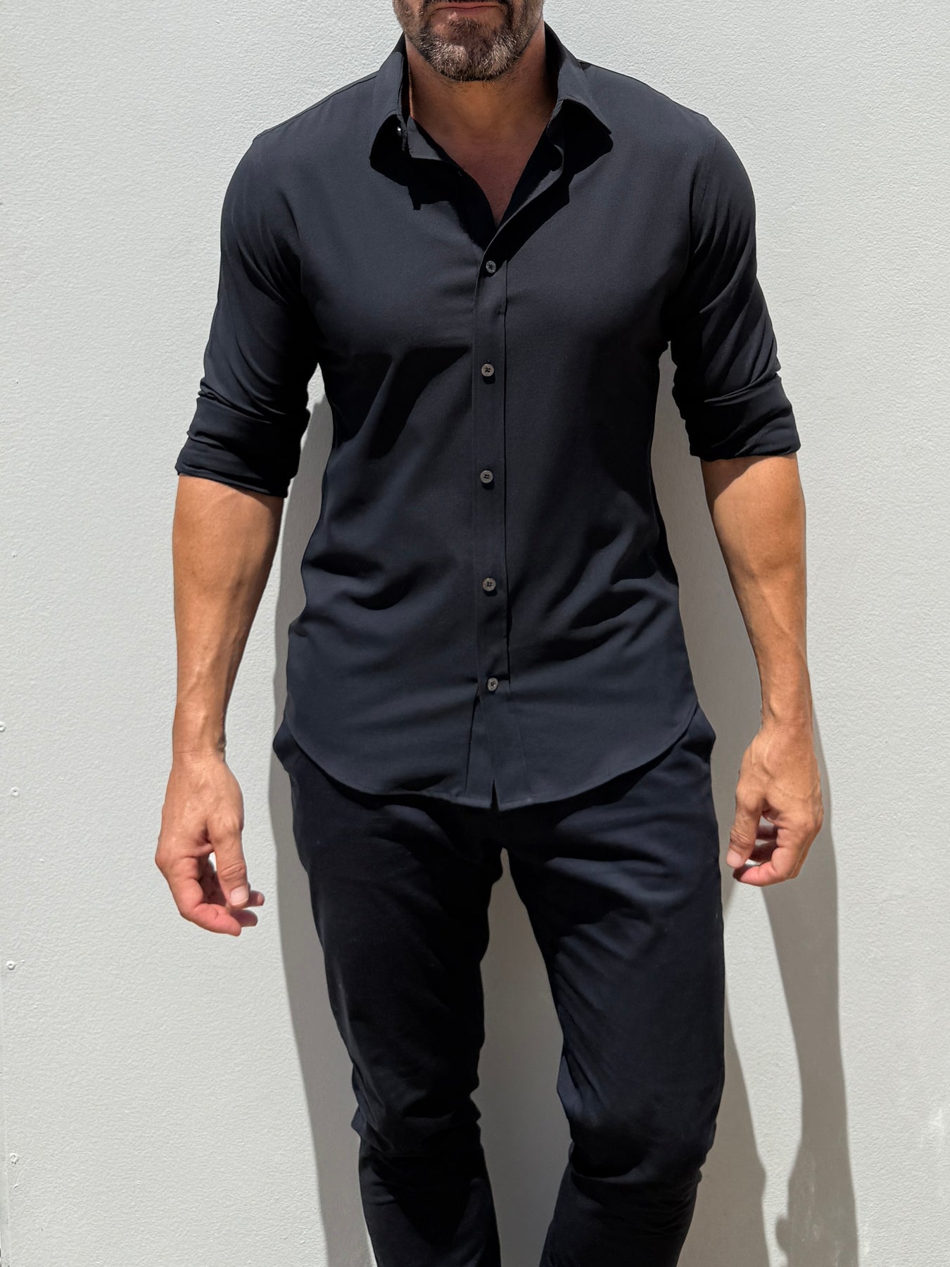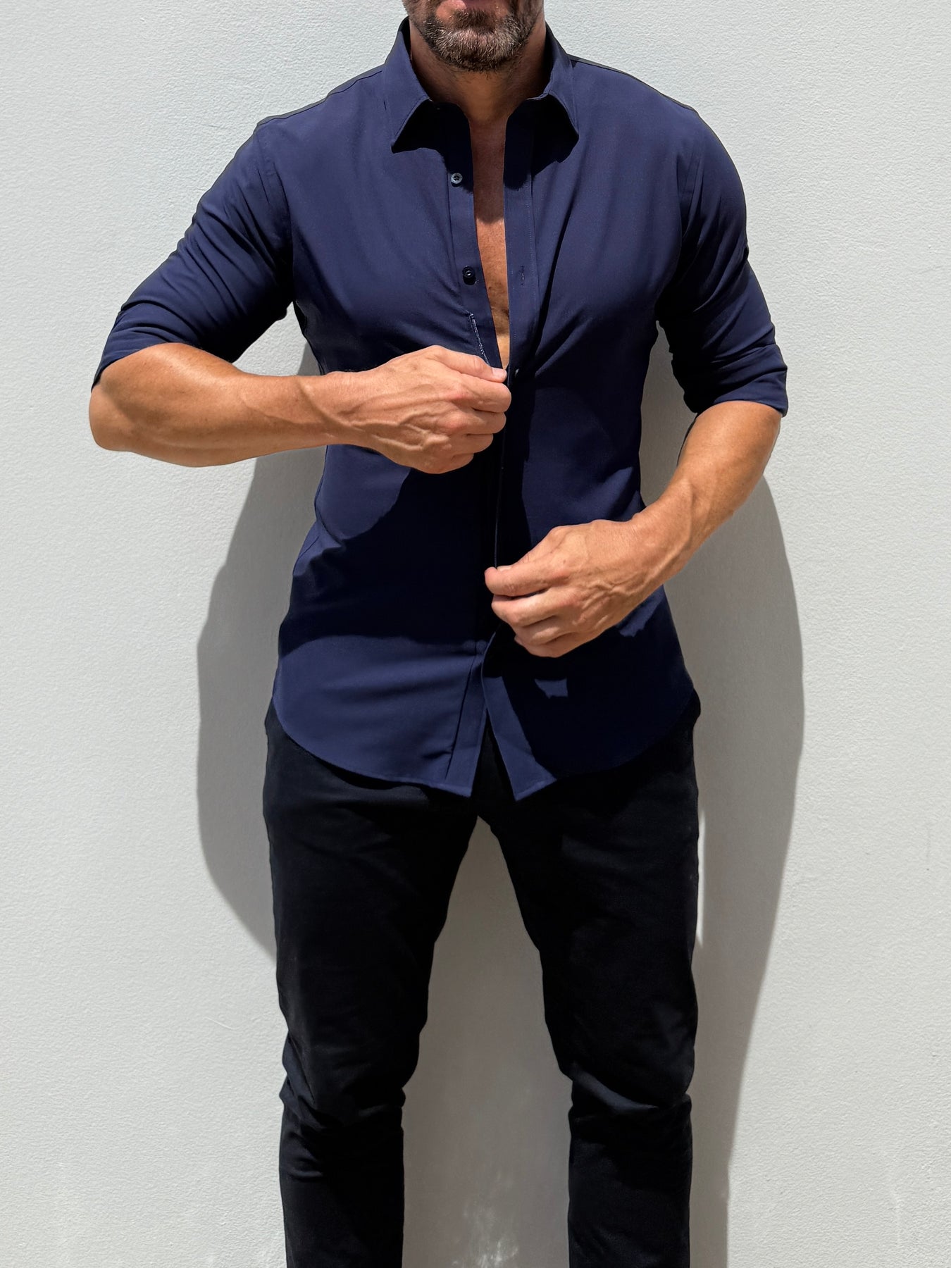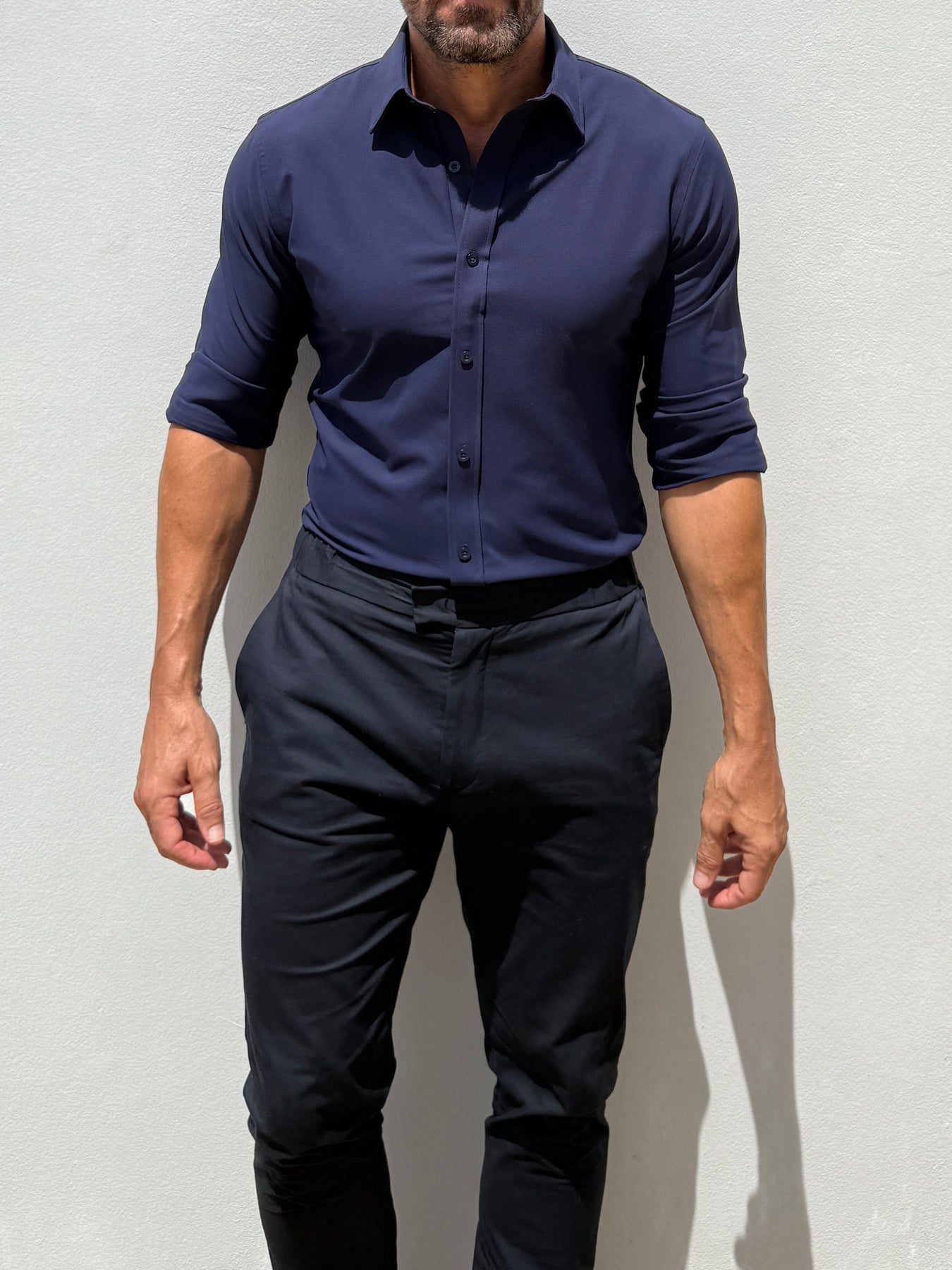We studied the archetypal male form to find the ideal ratio between shoulders, chest, waist and hips and built our shirt around it. The zipper evenly distributes any tension and allows you to wear a closer fitting shirt, without looking like you're busting out of it.
