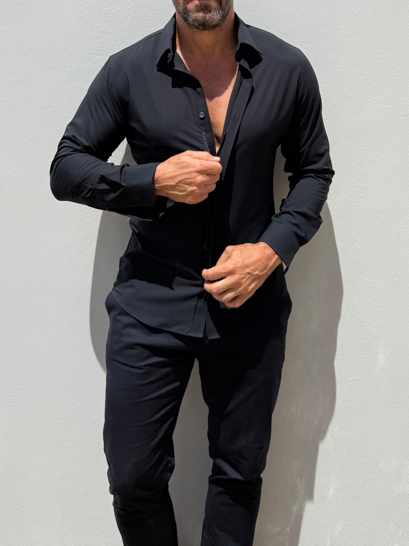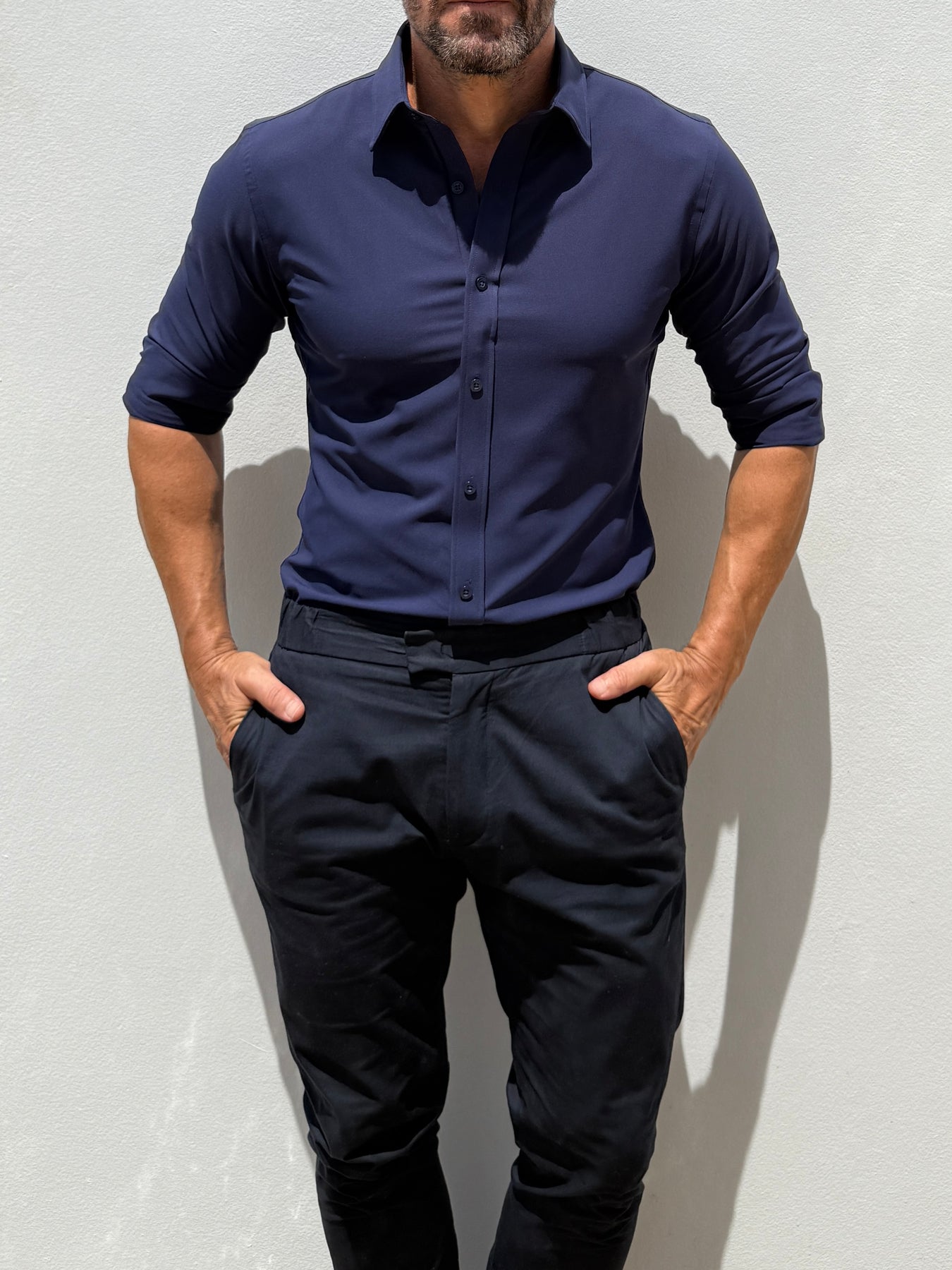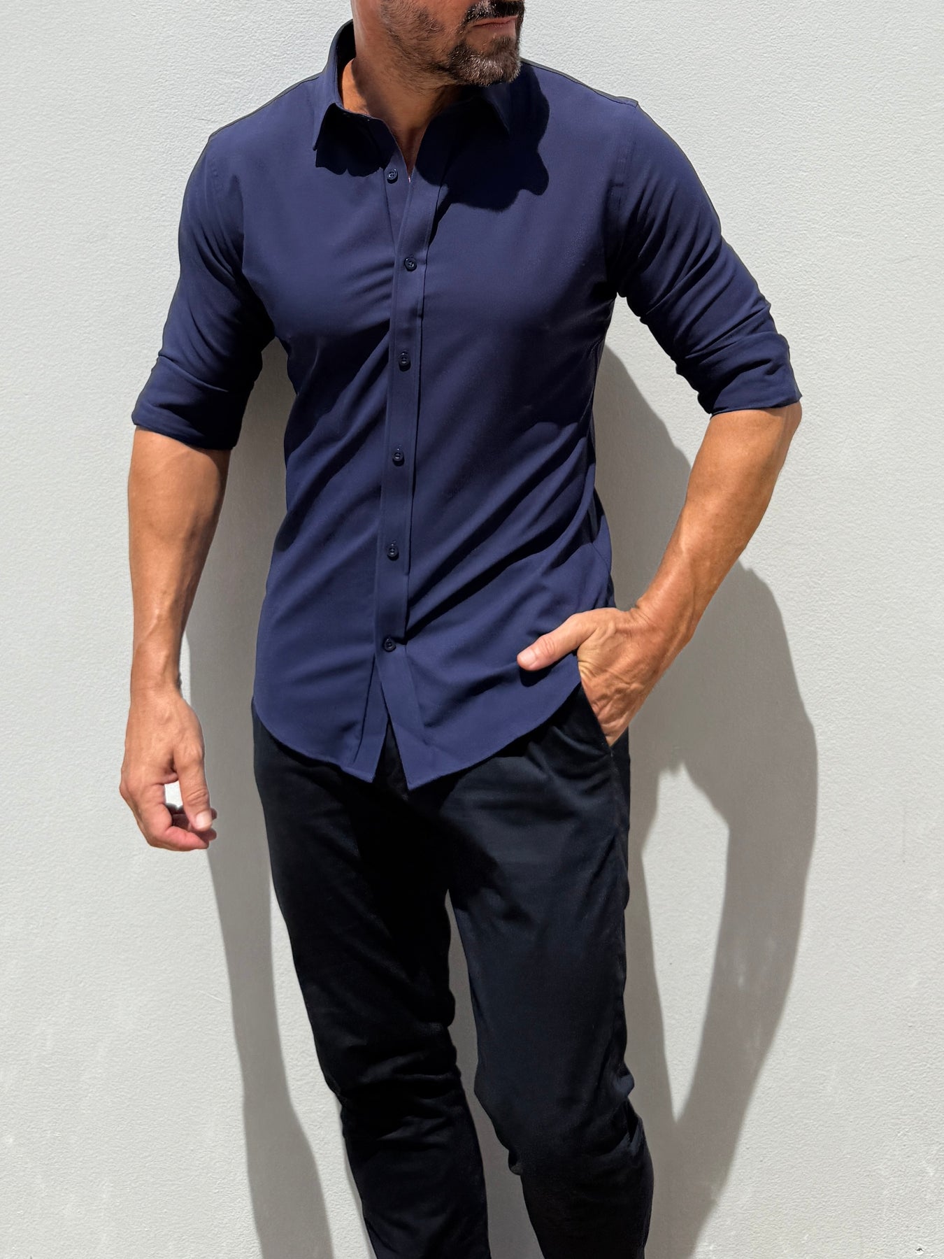 We studied the archetypal male form to find the ideal ratio between shoulders, chest, waist and hips and built our shirt around it. The zipper evenly distributes any tension and allows you to wear a closer fitting shirt, without looking like you're busting out of it.