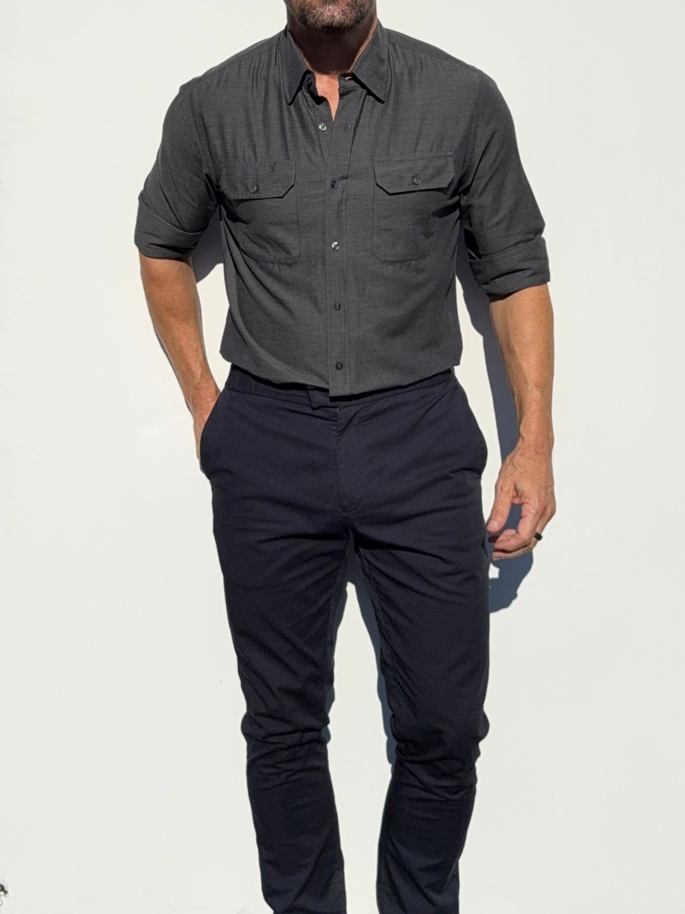 The Utility Shirt: Made with some ease built into the waist & hips- 3 inches & 1 inch respectively- our Utility Shirt is decidedly casual for a premium shirt.